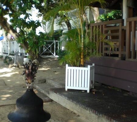 También me ofrecieron salidas y paseos, que decidí no tomar porque mi tiempo libre no era tan amplio. Caminando más hacia el sur llegué a un simpático bar llamado Daphnes. Luego la playa termina y hay que salir hacia la vereda para continuar caminando, ahí pasé por el Crystal Cove Resort, se lo veía tan lindo, limpio y ordenado como los anteriores.