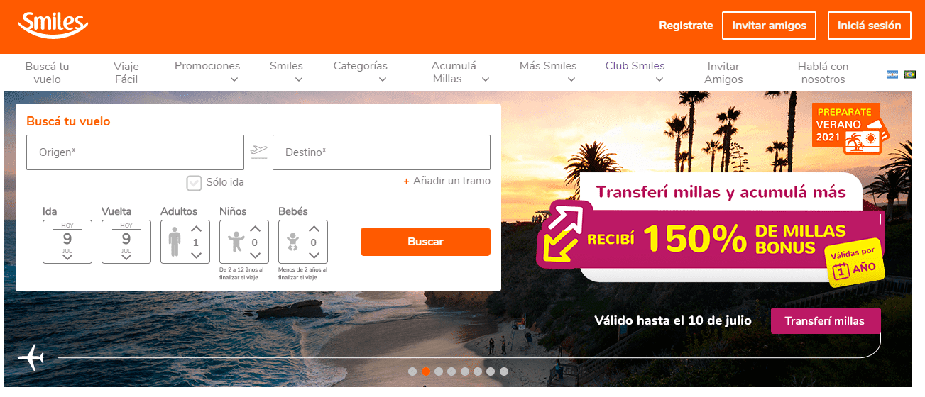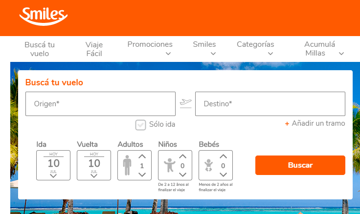 El canje de millas es muy sencillo, hay que entrar en www.smiles.com.ar y luego hacer click en «Buscá tu vuelo».