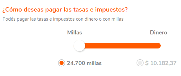 Estas tasas e impuestos pueden abonarse también con millas o, de desearlo, con dinero.