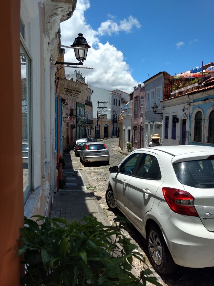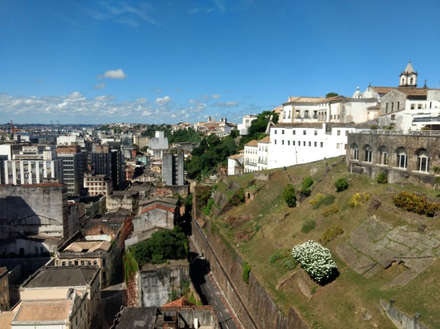 Decidí ir a dar una vuelta, siempre asistido por mi fiel amigo: Google Maps. Uno de los puntos turísticos de la zona es el Mercado Modelo, que está en la parte baja al lado del puerto. Miré el mapa y vi que no estaba tan lejos como para ir caminando. El recorrido normalmente (luego aprendí) se haría con el elevador Lacerda o el plano inclinado Gonçalves (una especie de vagón del viejo subte A de Buenos Aires que se mantiene horizontal sobre un plano inclinado, es un recorrido de unos segundos). Sin embargo, yo decidí salir a caminar y explorar el barrio. Deshice los pasos realizados la noche anterior, bajando por el Largo do Pelourinho, seguí por Ladeira do Carmo hasta el convento del mismo nombre y continué caminando.