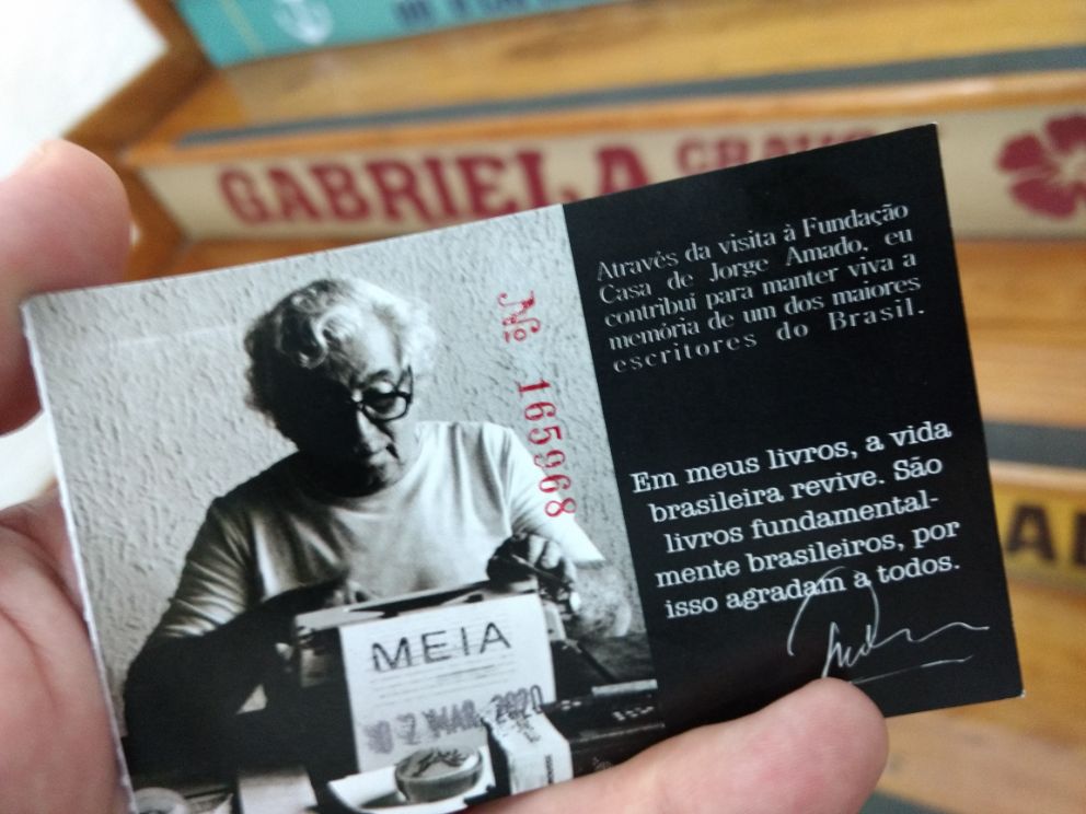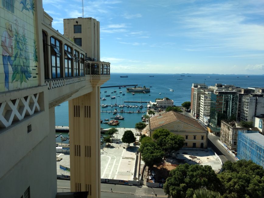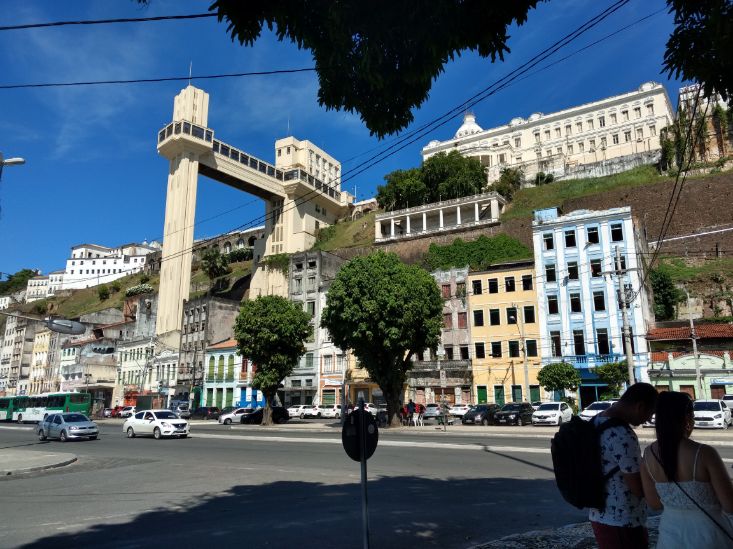 Frente al Mercado Modelo está el ascensor Lacerda, una obra pública que nos permite por 15 centavos de Real ir a la ciudad vieja (alta) desde la costa (baja). El viaje demanda unos segundos. Extrañamente no colocaron vidrios para disfrutar de la vista durante el recorrido, pero sí hay vidrios a la salida del elevador, con una vista imponente. Regresando a la ciudad alta visité varias iglesias entre las que se destaca la Catedral Basílica de Salvador. Entré. Había misa, miré un poco el show y salí. En la puerta vendían el típico acarajé de Bahia que disfruté al día siguiente. Retomé la calle de mi posada, al final de la misma está la casa-museo de Jorge Amado, quien dio a conocer Bahia al mundo con su obra. Decidí finalizar mi día allí, cerca de mi hospedaje y con un anfitrión de lujo, que quizás me ayudaría a entender mejor las contradicciones del barrio, del Brasil todo, diría.