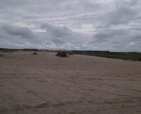 Llegaremos al final del camino, donde podremos estacionar el auto y deberemos caminar unos cientos de metros para llegar a la playa, primero por dunas con arena seca y luego por arena húmeda muy firme.