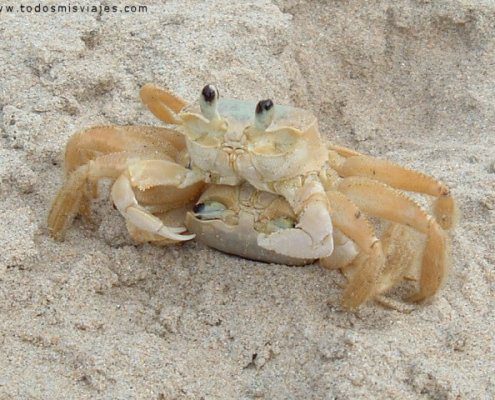 Tomando el camino que va a la playa, luego de caminar unos minutos ya se empieza a escuchar el sonido del mar y la tierra del sendero se va convirtiendo en agradable arena.