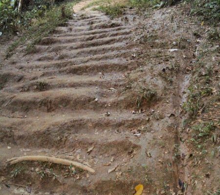 Es un poco difícil encontrar la entrada del sendero, ya que no hay ningún cartel que la señale. Si no llovió recientemente el camino no es difícil, pero con lluvia se torna un poco peligroso porque hay partes donde es muy angosto, se forma barro y al lado hay un precipicio lleno de árboles.