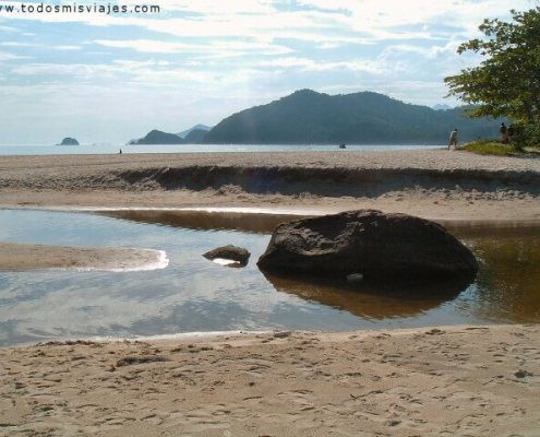 Al llegar a la playa vemos un pequeño río, que llega hasta el mar y es originado por el agua que llega del morro.