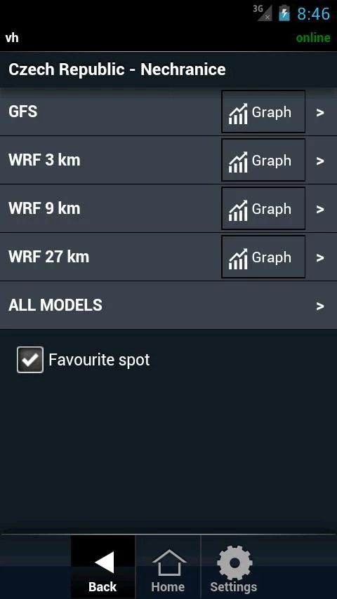 WindGURU realiza predicciones del tiempo, incluyendo el viento, la nubosidad, la cantidad de agua que lloverá, temperatura pronosticada, etc.